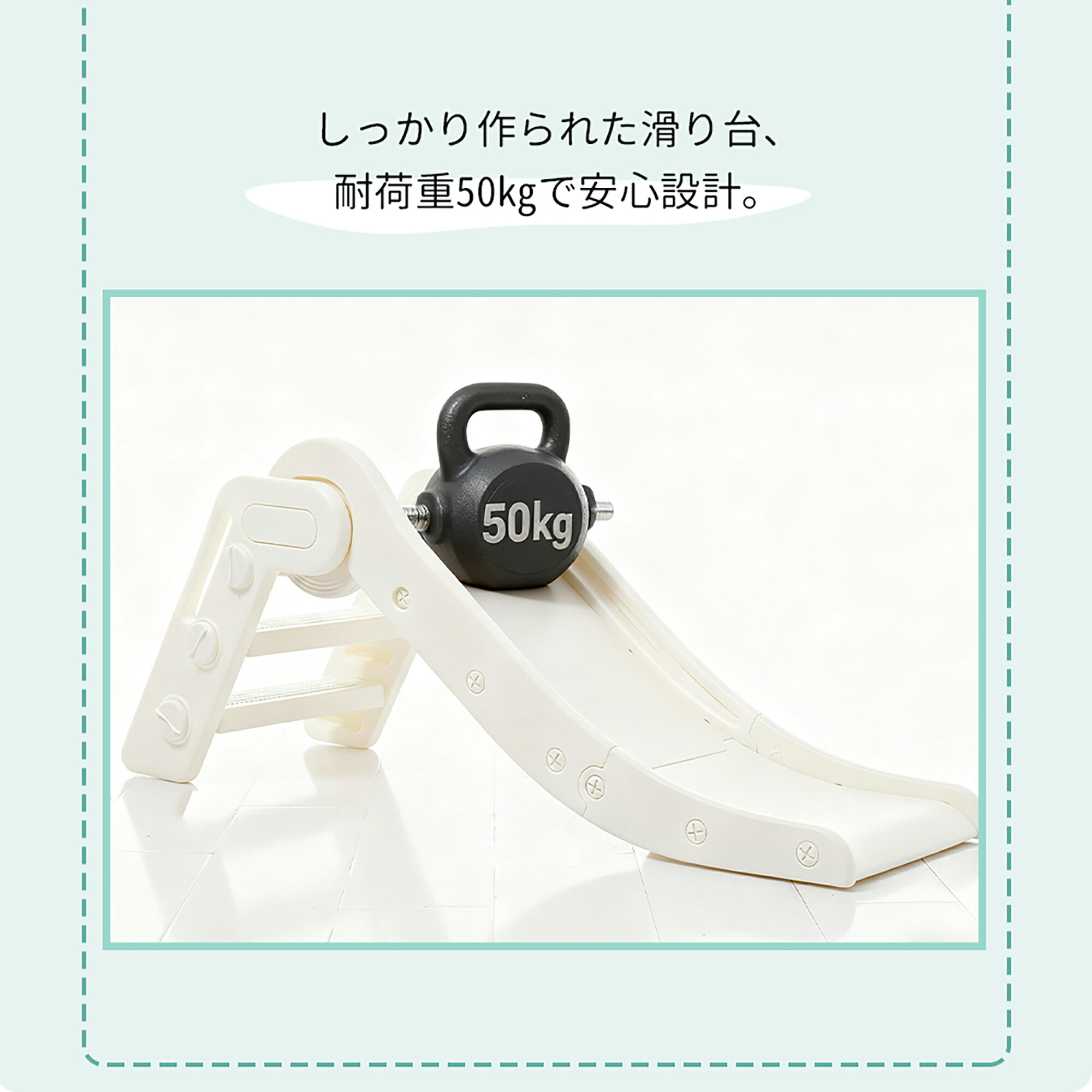 【100cmのロングスロープ】毎日遊んでも飽きない!105cmのロングスロープなので、公園に行かなくても、自宅で楽しく遊べます 【ロングなのに、場所を取らない!】お子ど様が遊びたい時に取り出して、使用しない時にはコンパクトに収納。 【安心して遊べる安全設計】滑り止め付き段階で安全設計。クローズドステップ、階段を登る際も安全。手すり、お子様は階段を登る際も安全!高さが控えめなので、転んでも大きなケガをしにくい。すべてのパーツは角を丸く加工しており、尖った部分がないのでお子様を傷つける心配がありません。しっかり作られた滑り台、耐荷重50kgで安心設計。 【安全第一!】PE食品グレード素材を使用し、無毒で無臭、子供にも安心。お手入れラクラク!耐水性も抜群で、長く使えます。PE素材は水を吸収せず、優れた耐水性を持っています。湿気や水分から守られ、長持ちするため、アウトドアにもぴったり!