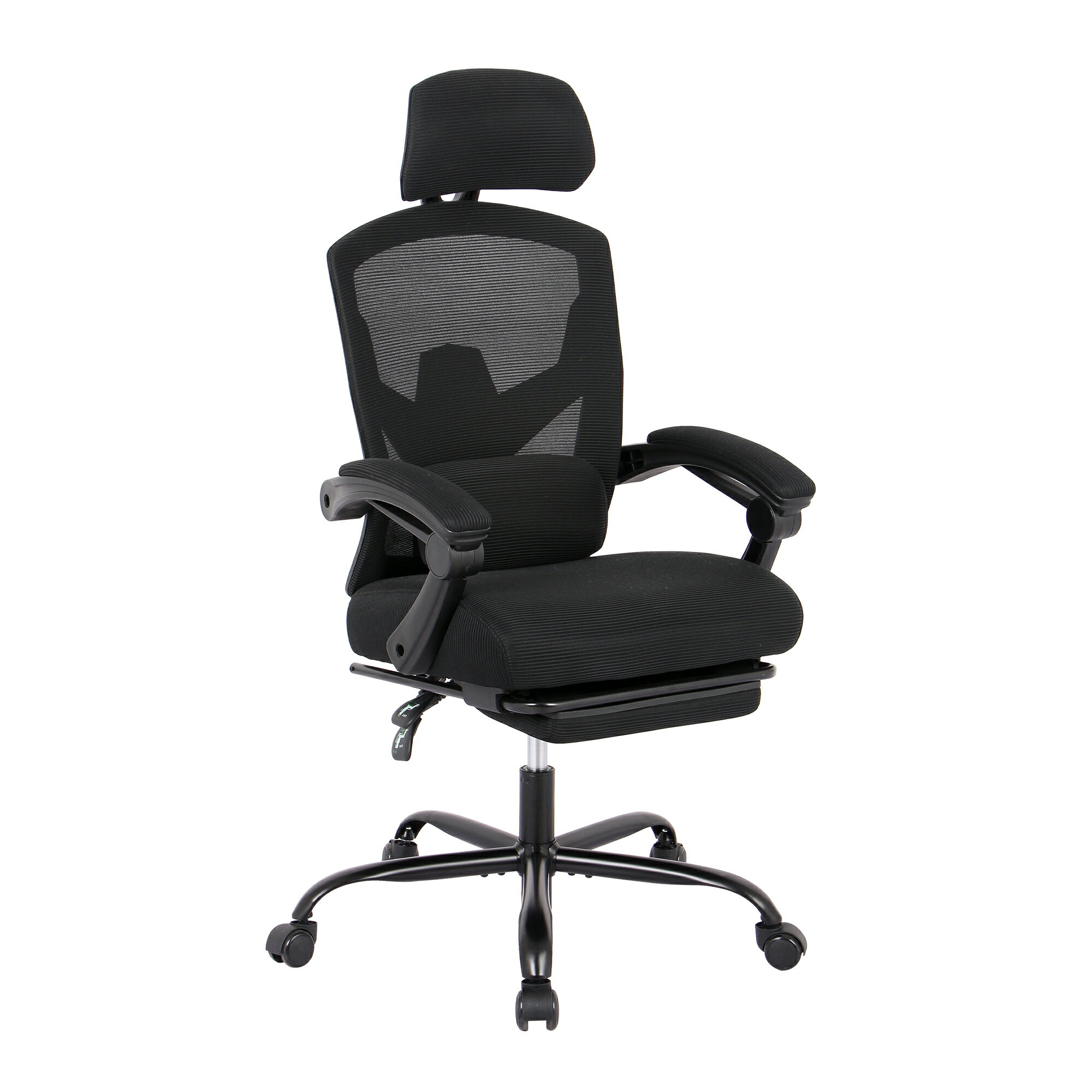 商品名 : オフィスチェア 事務所チェア リクライニング機能 足載せ付き ロッキング機能 メッシュタイプ