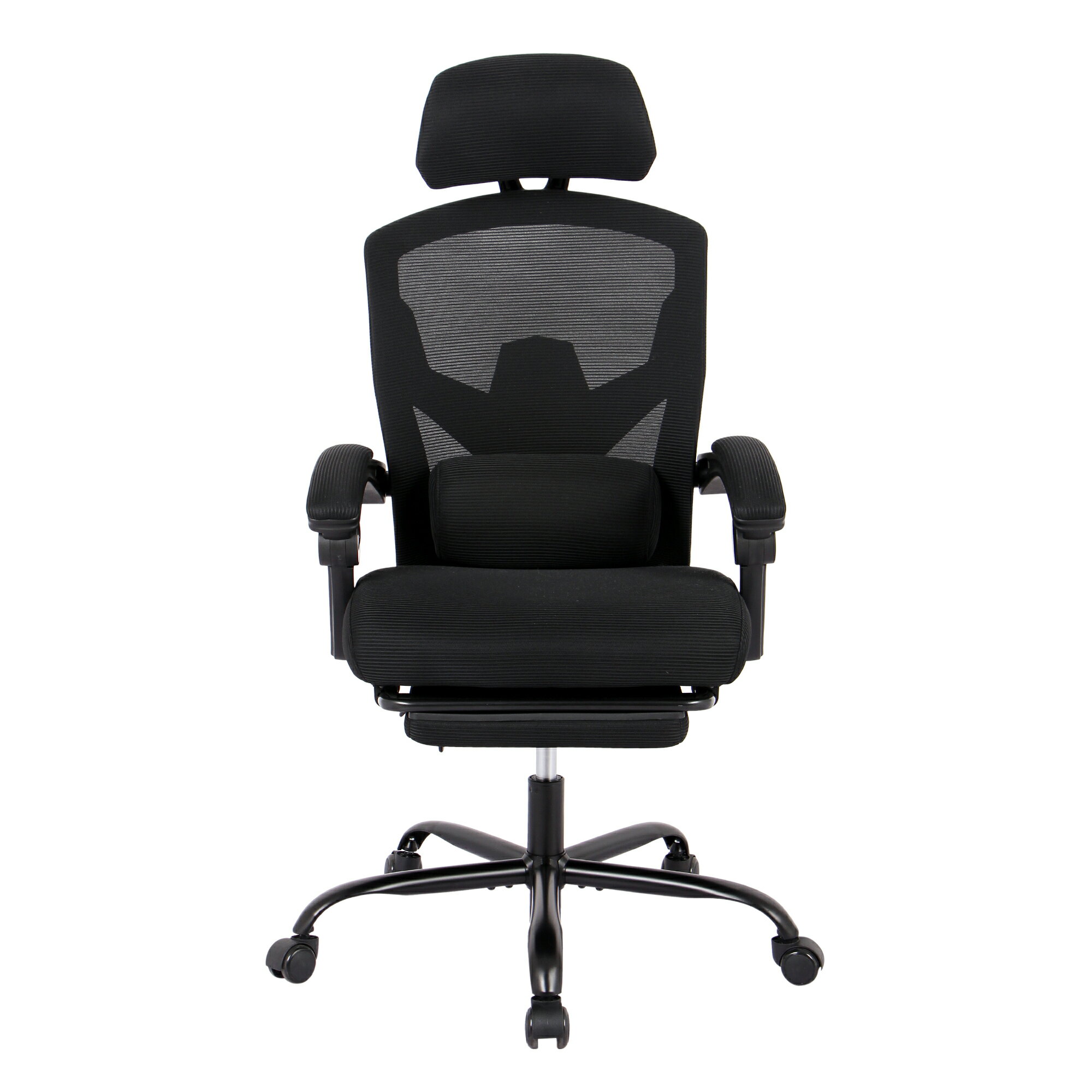 【おススメポイント】 1.【通気性に優れたプロ仕様の競技用メッシュ素材】暑い日でも蒸れずに快適に使用できるオフィスチェア。 2.【座面のクッションは分厚く弾力性満々】座面のクッションは分厚く弾力性があり、お尻に優しくフィットします。高密度の材料で、適度な柔らかさで心地よさ抜群です。 3.【移動しやすいスムースキャスター付き】キャスター付き事務椅子だから、向きを変えて作業をする際などにとても便利。4.【高さが楽に変えられる調節バー付き】ワンタッチで高さ調整が可能。座る人やテーブルの高さに合わせて変更ができる。 5.【リクライニング機能と足載せ搭載】背もたれは約120度まで倒れるので、疲れた時に簡単に休憩をとることができます。また足載せも付属しているので完全にベッドのように安心に休むことができます。 6.【上半身をしっかり受け止めるハイバック】背もたれ、座面を包む高弾力素材が、体をふんわり優しく受け止めます。スポット包み込まれるような感覚で、長時間のデスク作業も対応です。綺麗なシルエットが引き立つモノトーンカラーオフィスでもプレイベートシーンでもお部屋にスッと浴け込むようなモダンクールな雰囲気が魅力です。 7.【座ったまま伸びが出来るロッキング機能】体重をかけると背もたれが倒れるロッキング機能付き。ちょっと疲れてしまったときや、集中力が切れたときの気分転換ができます。8.【360度回転座面】立ち上がらなくても手が届く。9.【シンプルで非凡なデザインの背もたれ】Y字型の背もたれに通気性の良いメッシュ素材を採用したメッシュチェアです。程よい弾力がある蒸れにくいメッシュ素材採用で、1年中快適に使用できます。 10.【腰を支えるサポートバー】腰部分のサポートバーで、長時間の作業でも腰や背中が疲れにくい。11.【調節可能ヘッドレスト】高さ調整ができる曲線ヘッドレストは、頭をふわっと優しくキャッチ、頭部や首部の疲労を解除されます。 12.【人間工学設計】メッシュバックレストは優れた弾力を持って、お腰と背中の曲線に完全にフィットし、快適なサポートを提供し、長時間の作業でも楽な姿勢を保ちます。姿勢に合わせてしなやかに対応できる構造で、圧力を吸収、疲労を抑え、理想の姿勢を保てる背もたれで体のラインにフィットして支えます。 1【商品仕様】商品サイズ:幅66(アーム含)×奥行66×高さ108.5-118cm座面高さ(座面厚除く):43.5-53cm重量:15.1kg 耐荷重:約100KG 素材:張り地:プロ仕様 通気性良いメッシュ/ 座面内部:ウレタン / フレーム:スチール(クロームメッキ塗装仕上げ)/キャスター:ナイロン