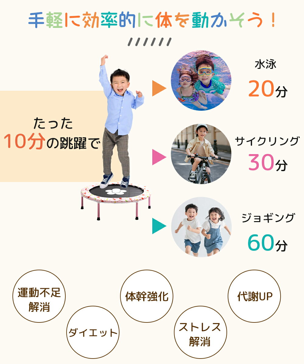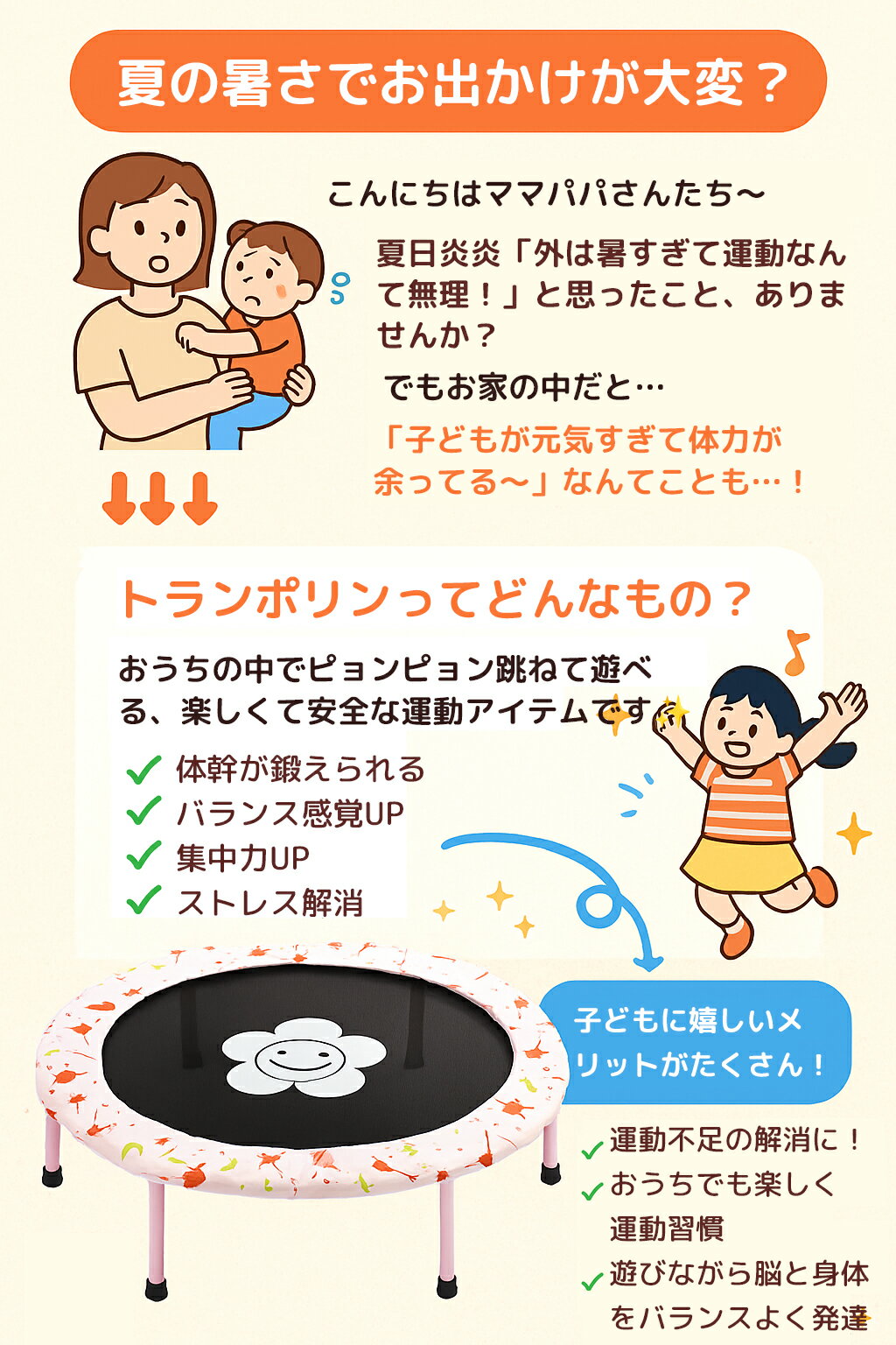 商品名 : ✨️10%クーポン配布中✨️トランポリン 子供 折りたたみ 大人用 コンパクト 静音 男の子 女の子キッズ ダイエット 子供 子供用 家庭用 室内 高さ調整 手すり スポーツ 収納 組み立て式 あそび プレゼント ギフト おもちゃ