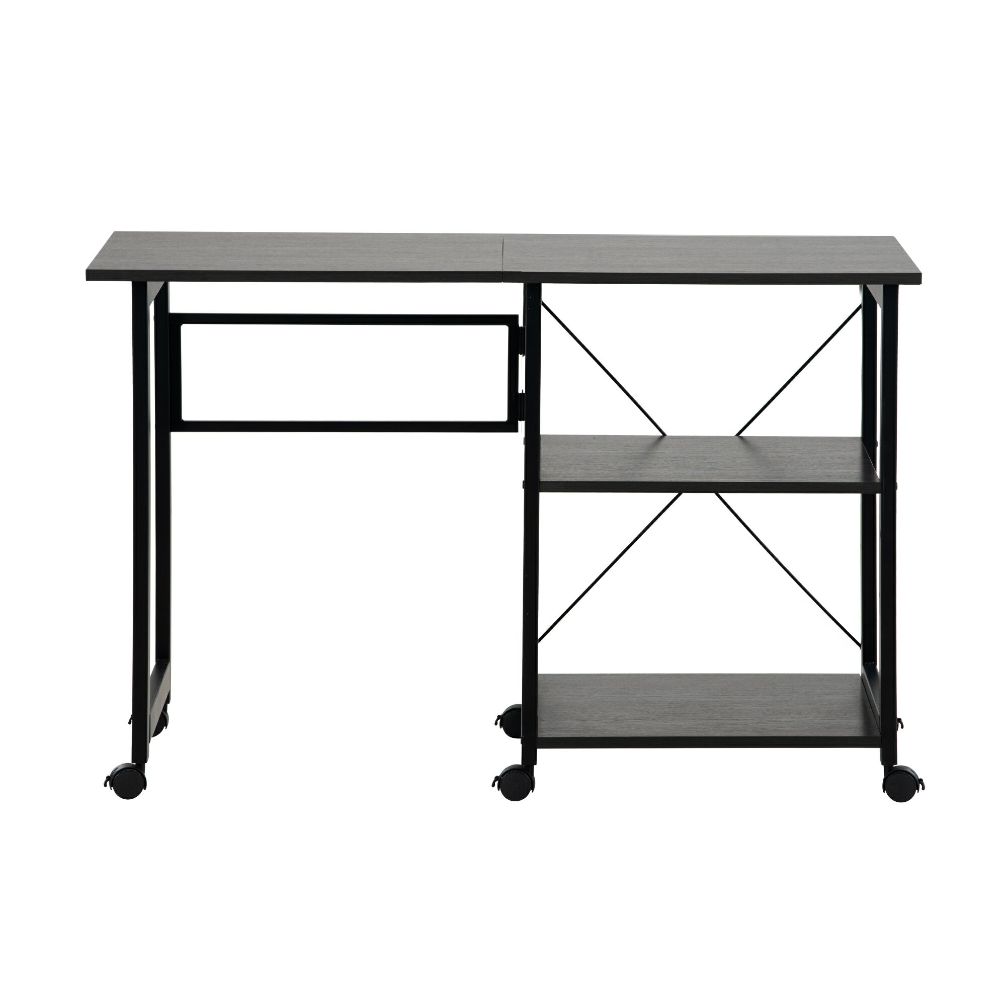 【木目の立体感までを再現した美しい木目模様天板】なめらかな手触り天板は高級感といい肌触りが兼ね備える上、水や汚れに強く、耐久性も優れて、お手入れも簡単です。汚れた時もサッと簡単に拭けます。 .【折りたたみ可能】サイド部分は折りたたみできるので、パソコンデスクと収納ラックの1台2役の使いやすいデザイン。 【大収納力備えるラック】ほしいものにすぐ手が届くラックが付いています。シェルフの棚板は耐荷重10kgの頑丈設計で、本や新聞などをたっぷり収納できます。 【一人暮らしにも、ビジネスにも】ゆったり快適に使えるから、ご自宅でも、オフィスでも大活躍【スペース活用】スペースを有効活用、便利なスリムデスク場所を取らず、狭いスペースにも設置できます。