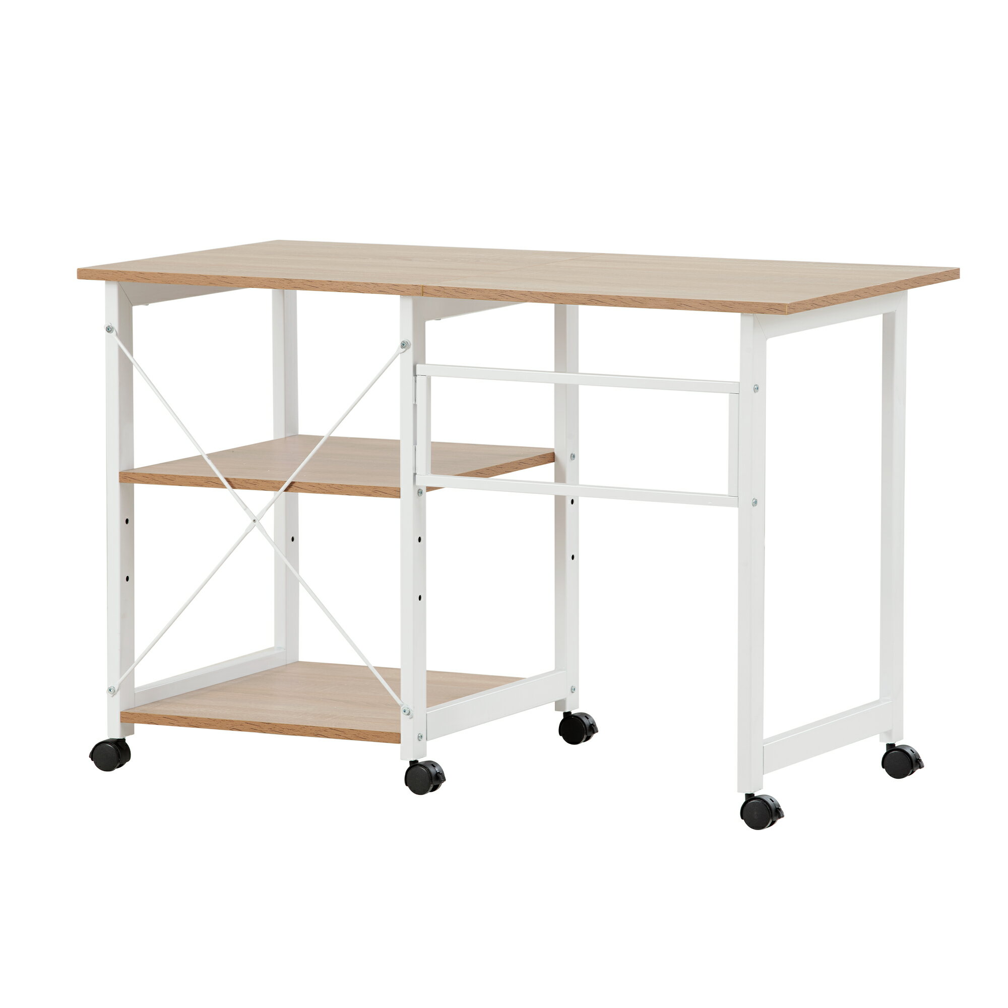 1.【木目の立体感までを再現した美しい木目模様天板】なめらかな手触り天板は高級感といい肌触りが兼ね備える上、水や汚れに強く、耐久性も優れて、お手入れも簡単です。汚れた時もサッと簡単に拭けます。 3.【折りたたみ可能】サイド部分は折りたたみできるので、パソコンデスクと収納ラックの1台2役の使いやすいデザイン。 4.【大収納力備えるラック】ほしいものにすぐ手が届くラックが付いています。シェルフの棚板は耐荷重10kgの頑丈設計で、本や新聞などをたっぷり収納できます。 5. 【一人暮らしにも、ビジネスにも】ゆったり快適に使えるから、ご自宅でも、オフィスでも大活躍 6.【スペース活用】スペースを有効活用、便利なスリムデスク場所を取らず、狭いスペースにも設置できます。 7.【あらゆるシーンで使える】書斎・寝室・子供部屋・オフィスルーム・リビングルーム・ミーティングルーム 製品サイズ:幅(46-107)*奥行55*高さ70cm天板サイズ:幅(53.5-107)*奥行55cm重量:約15.9kg 梱包重量:約17.2kg 天板耐荷重:30kg ラック耐荷重:15kg素材:天板: 15mmMDF+メラミン化粧板 フレーム:スチール(水や汚れ、摩擦に強い粉体塗装)