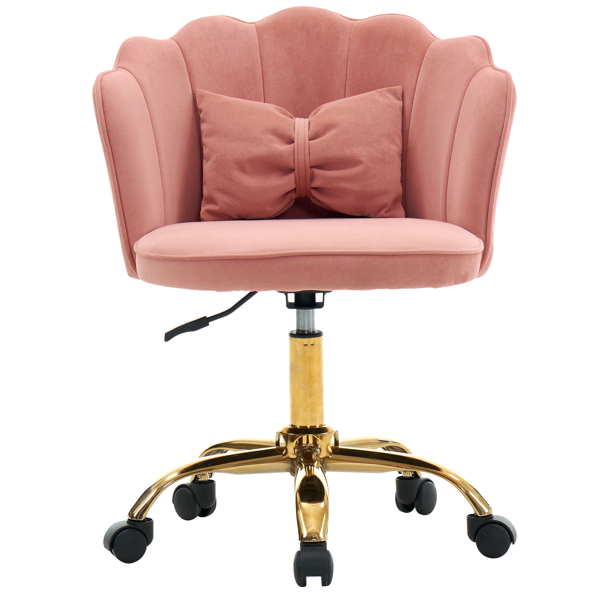 【花びらのような精緻なデザイン】一目みたら忘れまい花びらのような精緻なデザイン、大人かわいい女性に好まれる。 【柔らかい背もたれ】雲のような柔らかい背もたれがあり、腰を包み込んでくれる。緩やかな曲線がしっかりフィっトするので、快適な座り心地を実現。 【包み込まれるような安心感ある座り心地】ソファーで座っているような座り心地、ウレタンフォームにより弾力感があって深く沈まず、尻や腰を負担のない姿勢に自然と導く、しっかり安心感を支える。 【エレガントな金属脚】落ち着いたゴールドの輝きが上品の金属脚、異素材であるブライト ロックと見事にマッチングしている。また、静音ナイロンキャスターで、スムーズに回転するため、床を傷つけにくい。耐摩耗性、耐食性に優れ、長期間使用できる。長く安全にご使用いただける。 【高さが楽に変えられる調節バー付き 360度回転座面】360度回転チェア、45.5cm~51cmまで12cm範囲調節することができる。昇降操作が簡単で、大人も子供も身長やシーンに応じてに調節いただけます。