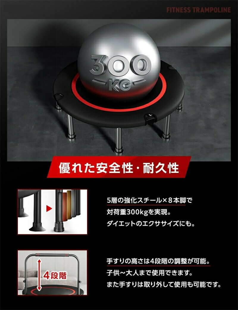 商品名 : トランポリン 室内 静音 8本脚 耐荷重300kg 手すり調節可能